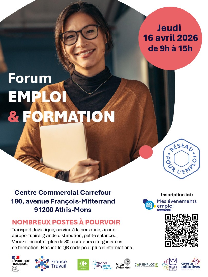 Le forum de l'emploi et de la formation du Centre commercial d'Athis-Mons aura lieu le jeudi 16 avril 2026.