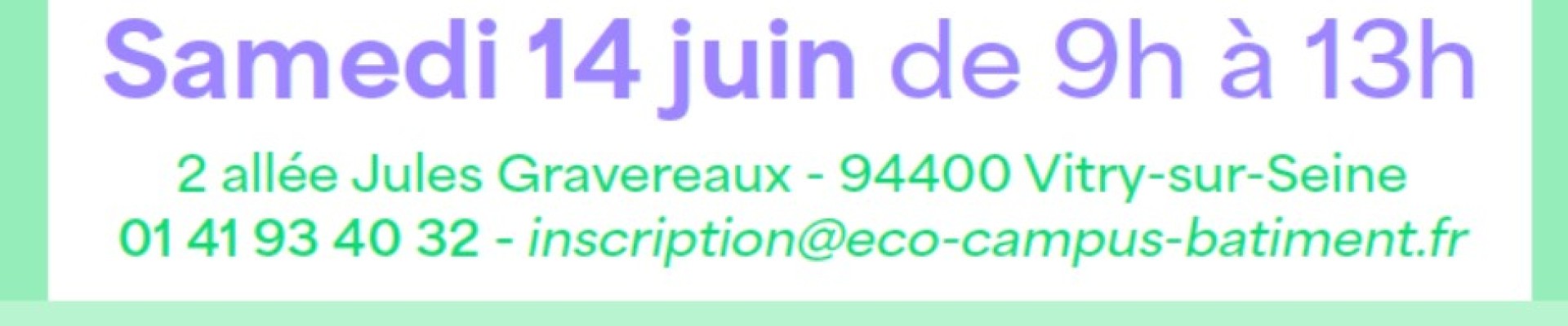 📍 Lieu : Eco Campus du Bâtiment au 2 allée Jules Graverereaux 94400 Vitry-Sur-Seine.