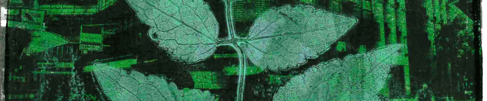 A partir d’une photo urbaine et d’un tirage cyanotype, jouer la surimpression végétale par transfert couleur à l’aide d’une plaque de gel.