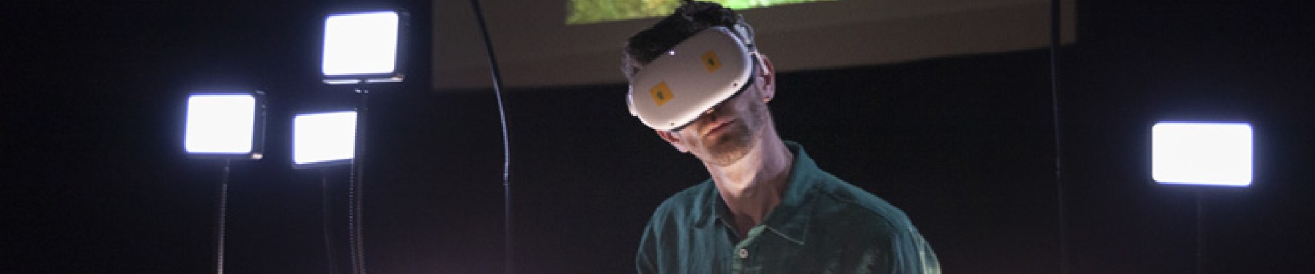 La solastalgie c’est ne plus reconnaître son paysage parce que celui-ci change trop rapidement. Plongé dans un casque de VR dont le contenu est retransmis sur écran, Raphaël Gouisset interroge nos environnements réels à travers un monde virtuel. Cet espace numérique devient la métaphore de nos paradoxes. Nous voyons les dérèglements qui touchent nos paysages, et malgré cela, nous changeons si peu. Quand on porte un casque de réalité virtuelle, il est si facile de se prendre un mur bien réel.